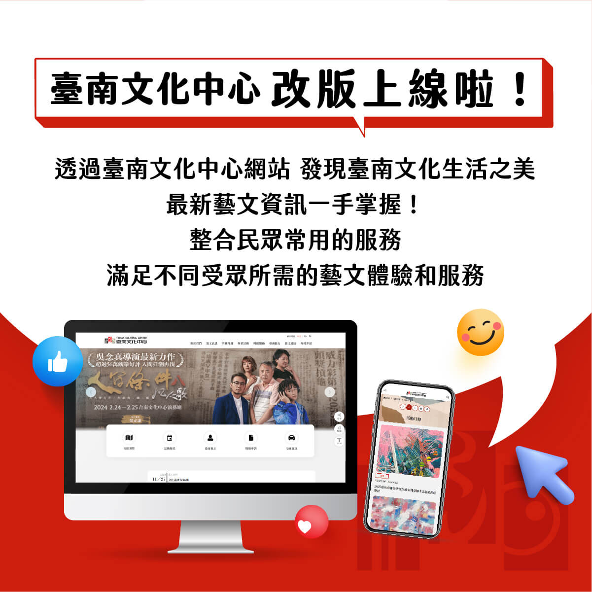 誠摯邀請大家多加瀏覽利用,感受臺南文化中心的魅力!。